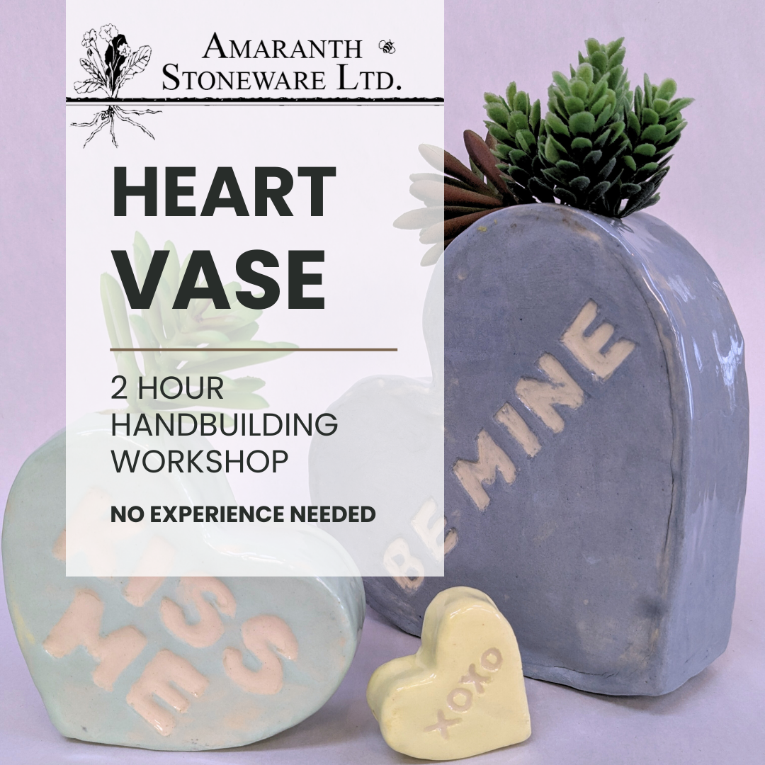 Put your heart into clay! In this hands-on workshop, you’ll create a playful heart vase using handbuilding techniques, stamps, and texture tools. No experience needed, just come ready to get creative and make something truly heartfelt. Gift it to your cutie for Valentine’s Day… or keep it alllll to yourself.